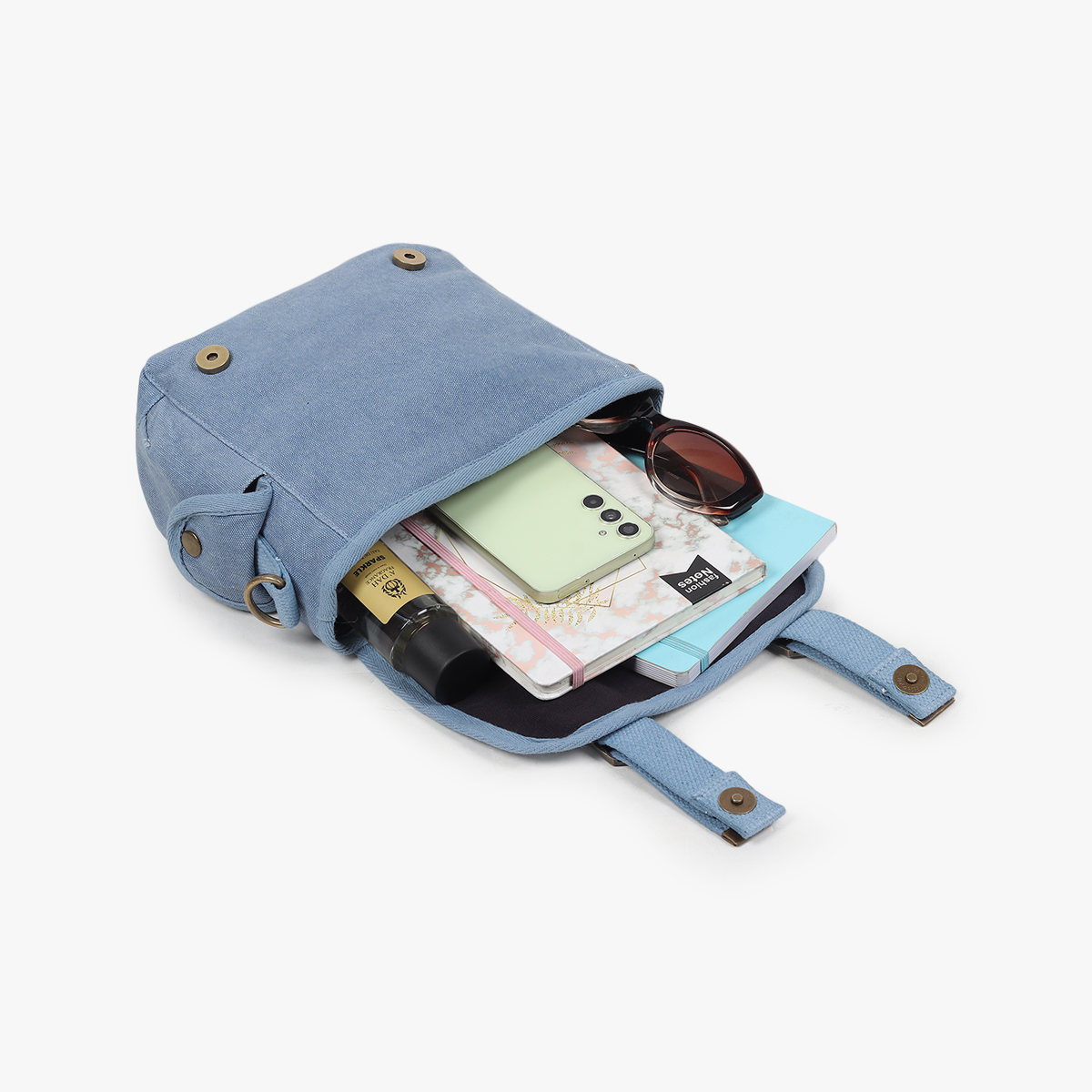 Sa grande contenance lui permet d’accueillir votre nécessaire du quotidien tel qu’un carnet au format A5, des lunettes ou encore un portefeuille.