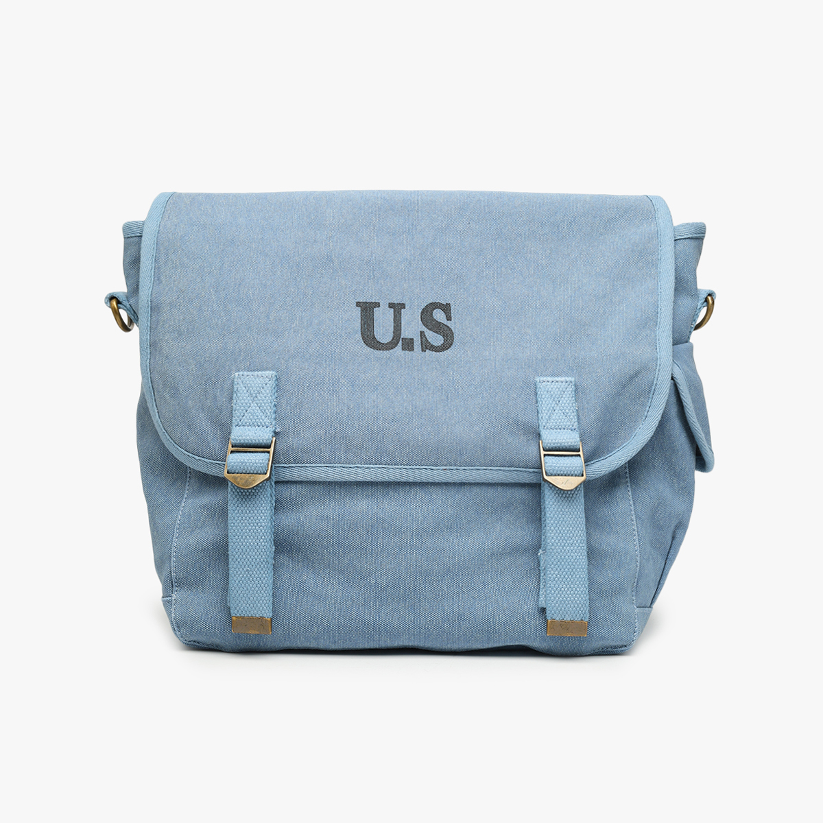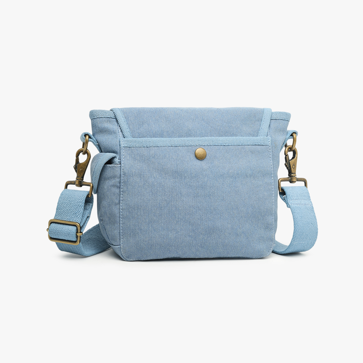 Grande besace en toile canvas ciel, garniture en coton ton sur ton. Doublure en sergé de coton bleu marine.