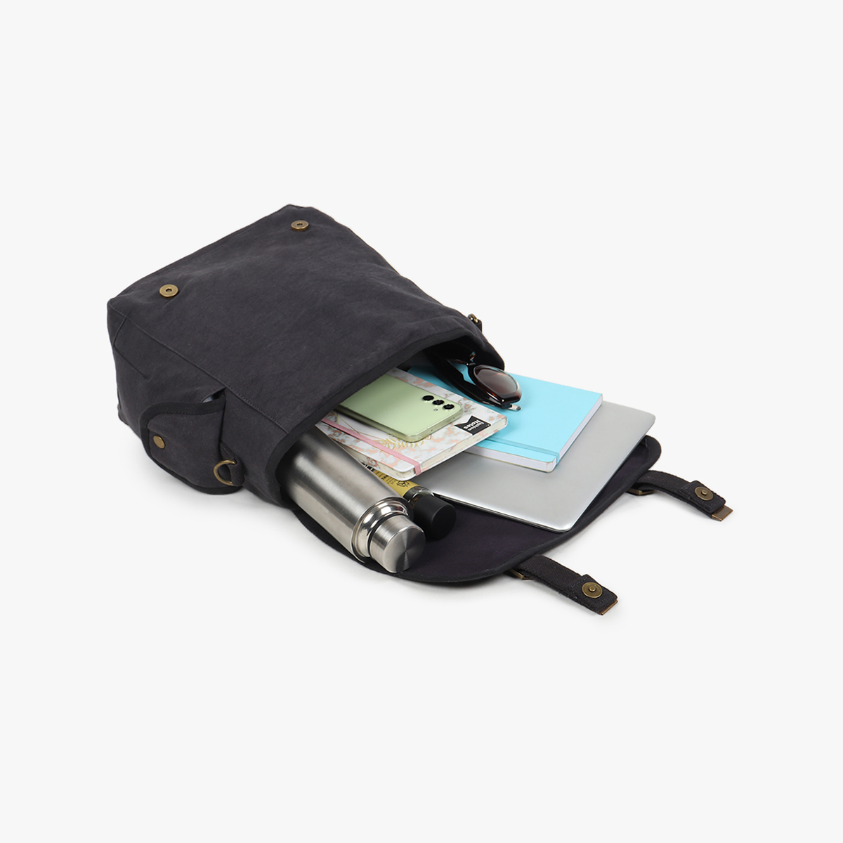 Deux poches extérieures plaquées sont fermées par une pression (coté et au dos du sac) pour garder à portée de main vos essentiels.