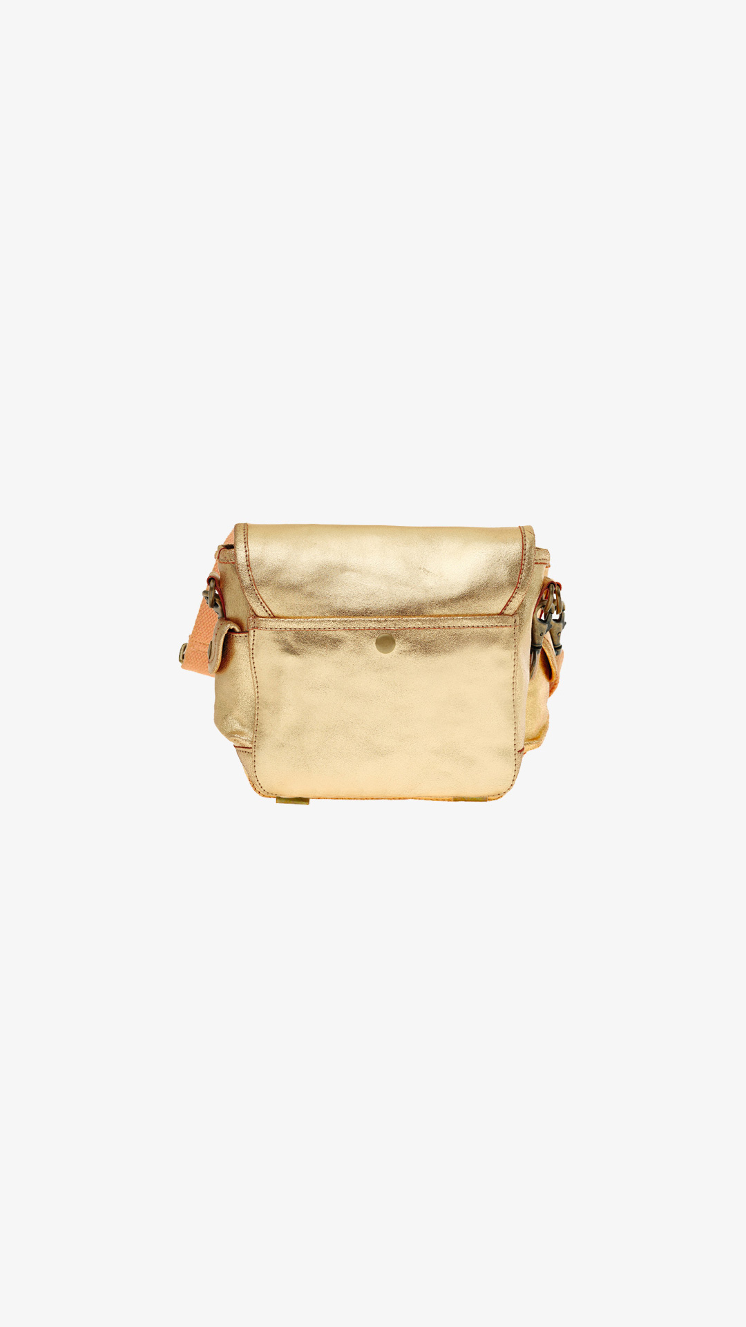 Coup de coeur pour la petite besace en cuir métallisé doré qui illuminera vos tenues jusqu’au bout de la nuit. La finition métallique confère à la besace en cuir un style audacieux et accrocheur. Le cuir métallisé crée un effet brillant qui attire l’attention et apporte une touche unique à votre outfit.